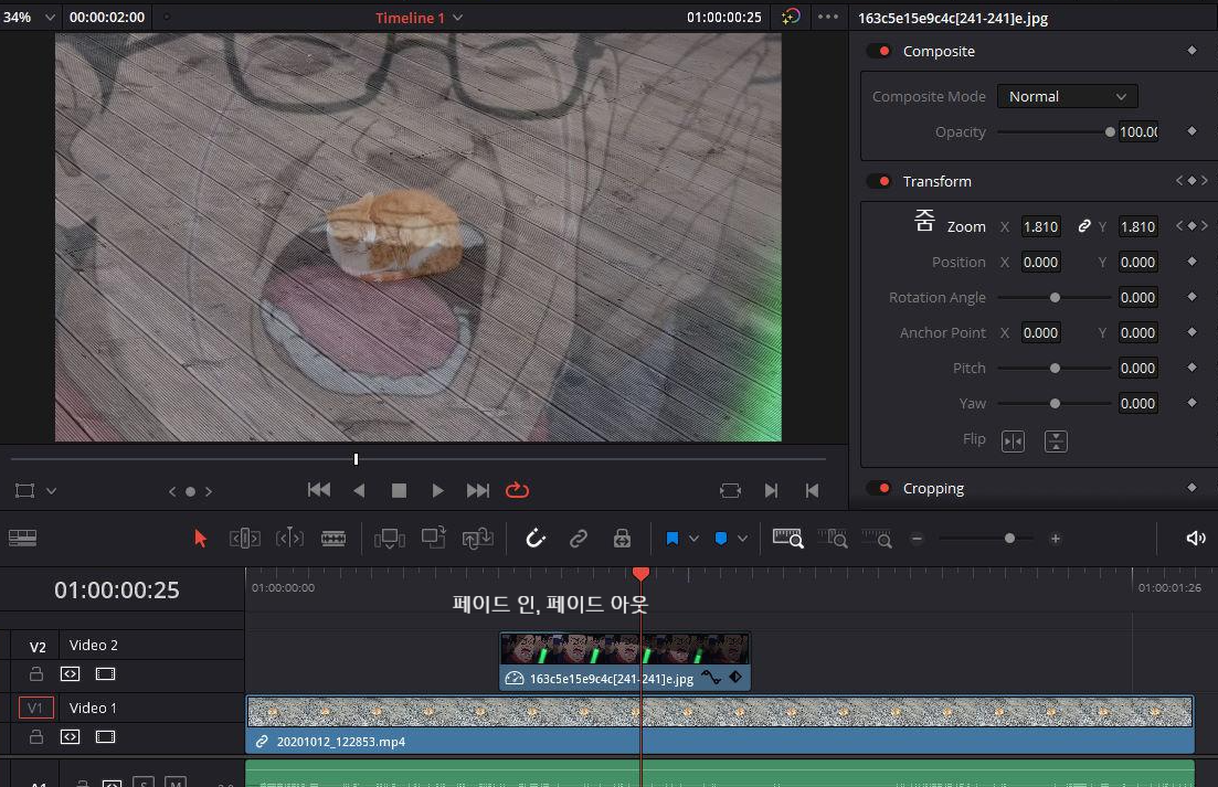 [다빈치 리졸브] #20 - 간단 줌 인, 줌 아웃, 화면 부분 확대시키기 키우기